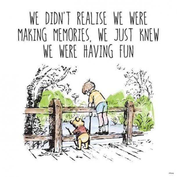 "We didn't realize we were making memories, we just knew we were having fun." — Winnie the Pooh